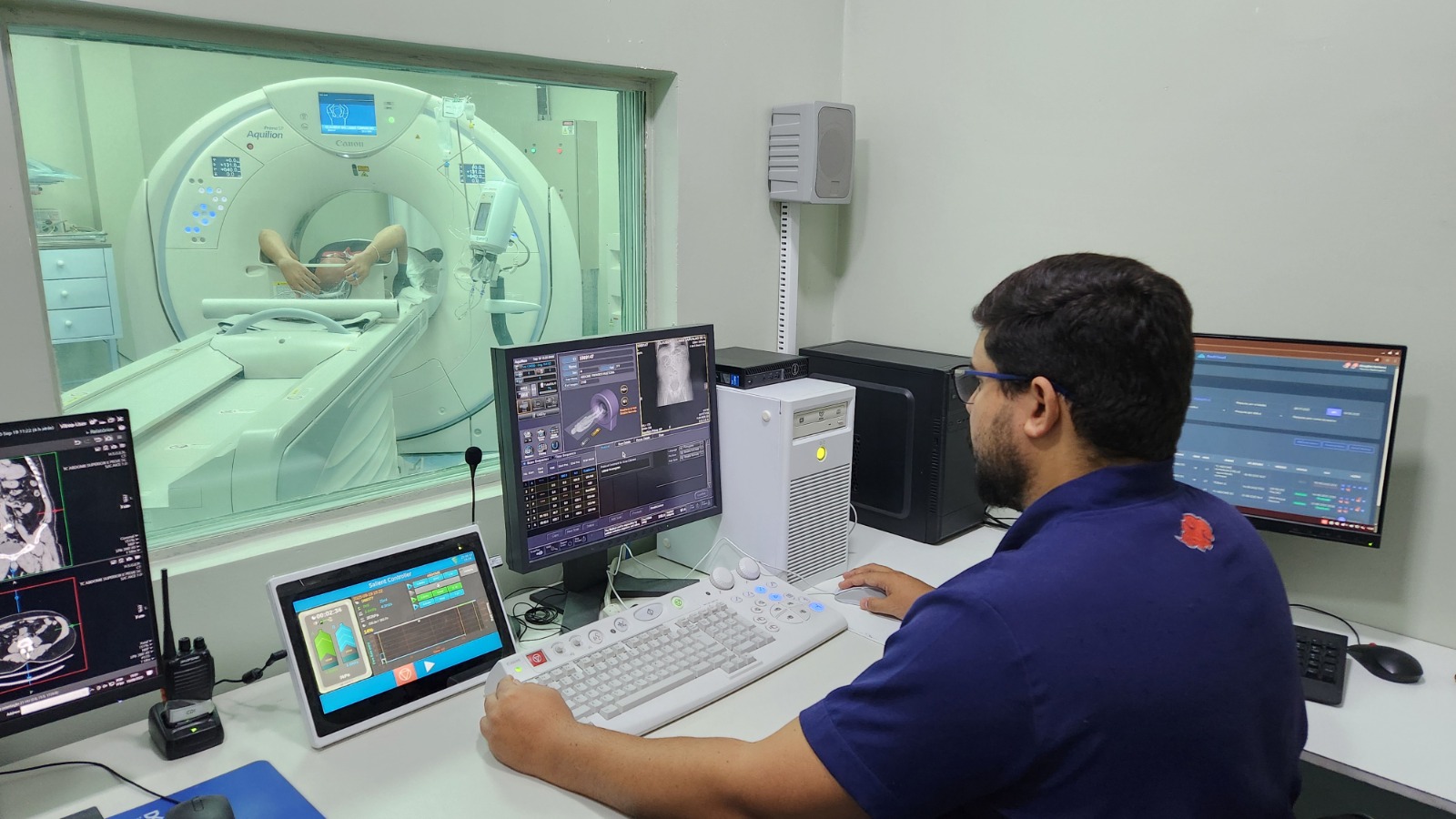 Conforme o coordenador de Radiologia, nos tomógrafos mais antigos, era necessário ajustar a técnica ao paciente para não expô-lo a uma quantidade de radiação desnecessária. Mas a nova máquina detém capacidade clínica completa assistida por IA (inteligência artificial), qualificando ainda mais os exames de imagem. “Quando o tomógrafo faz a primeira imagem, o software já lê os parâmetros do paciente e já define uma técnica, permitindo imagem legível sem uso desnecessário de radiação”, destaca Douglas Santana.
